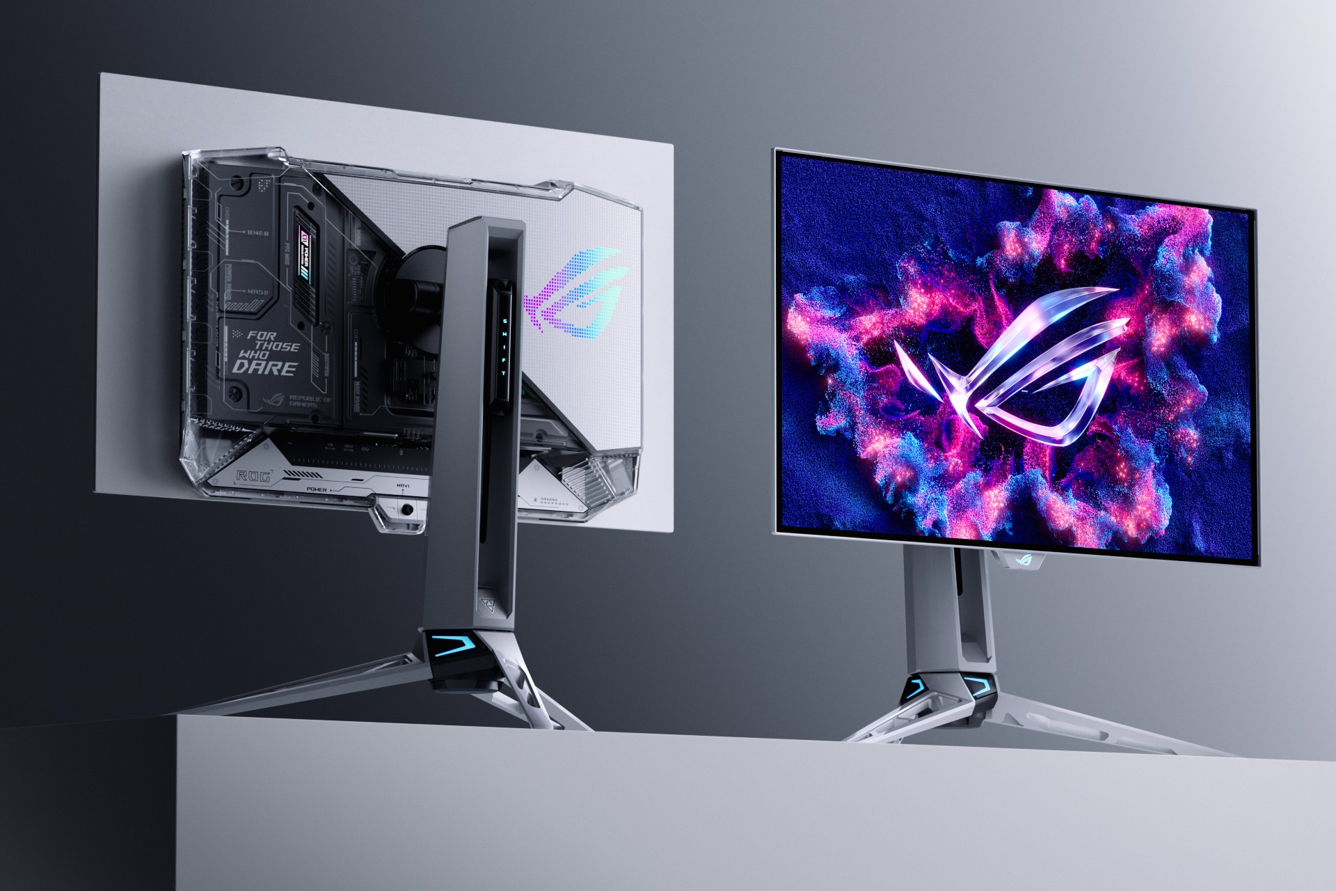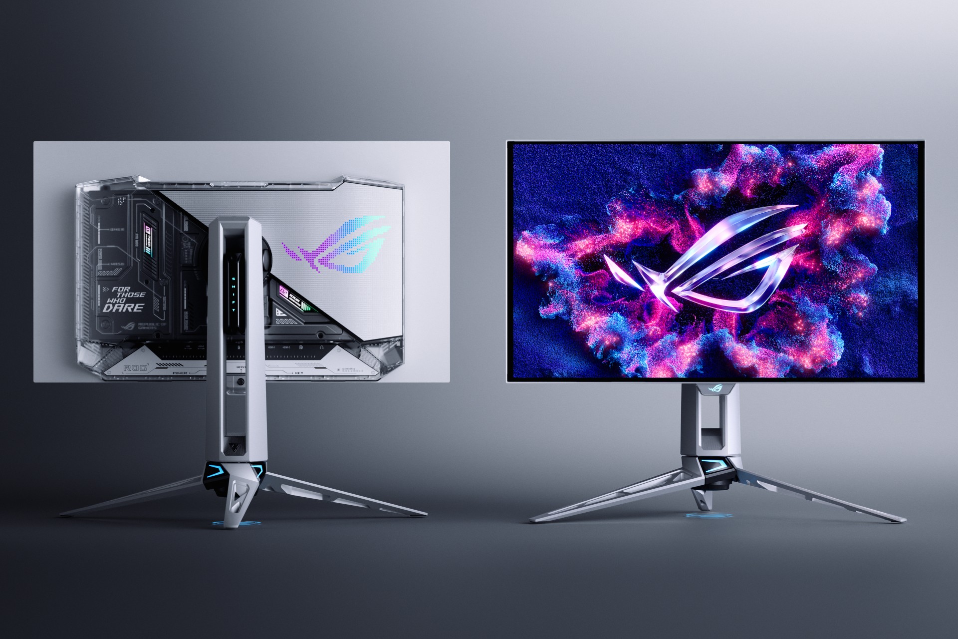 Here’s the part where I’d normally say “who needs 540Hz let alone 720Hz? Have you done the math and seen the diminishing returns?” Instead, I’m too busy gaping at Asus’ stunning new silver and translucent plastic design. Clear gadgets are near and dear to my heart, after all, and the skeletal silver really makes it stand out in a sea of black-framed panels.