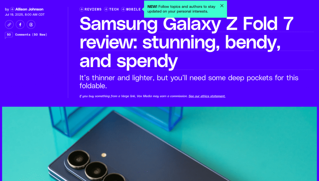 NEW YORK, NY (July 22, 2025) – The Verge today launched a suite of homepage and editorial product updates aimed at deepening its direct relationship with readers. The announcement includes a new feature that allows readers to follow topics and individual Verge journalists, view those stories in a personalized feed on the homepage, and receive […]