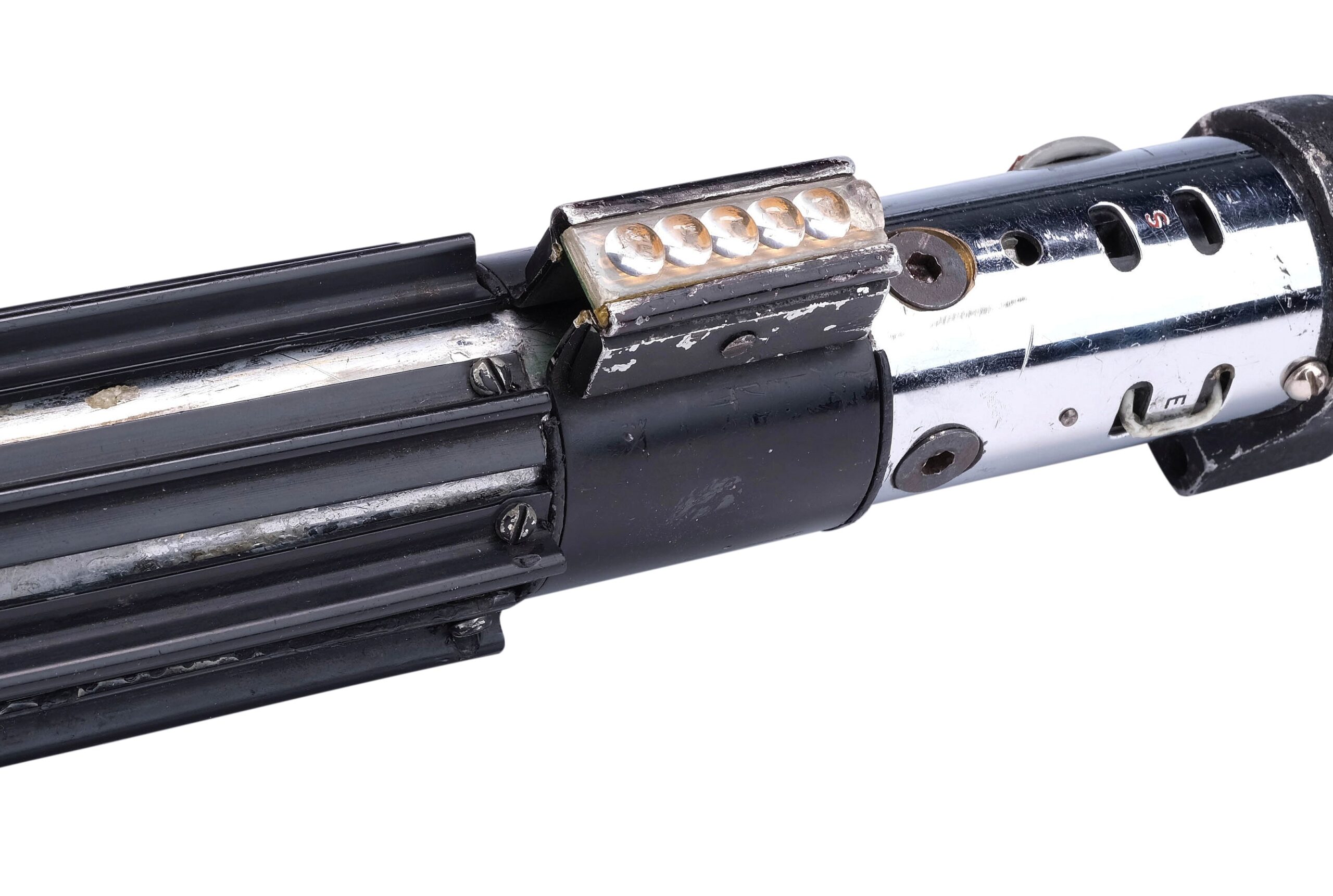 Darth Vader had this weapon in hand in Star Wars: The Empire Strikes Back (1980) and Return of the Jedi (1983). As noted by Propstore, it’s made from a 1950s British camera flash bulb attachment, which prop makers modified with plastic grips, electrical wires, and magnification bubbles used in vintage calculators.