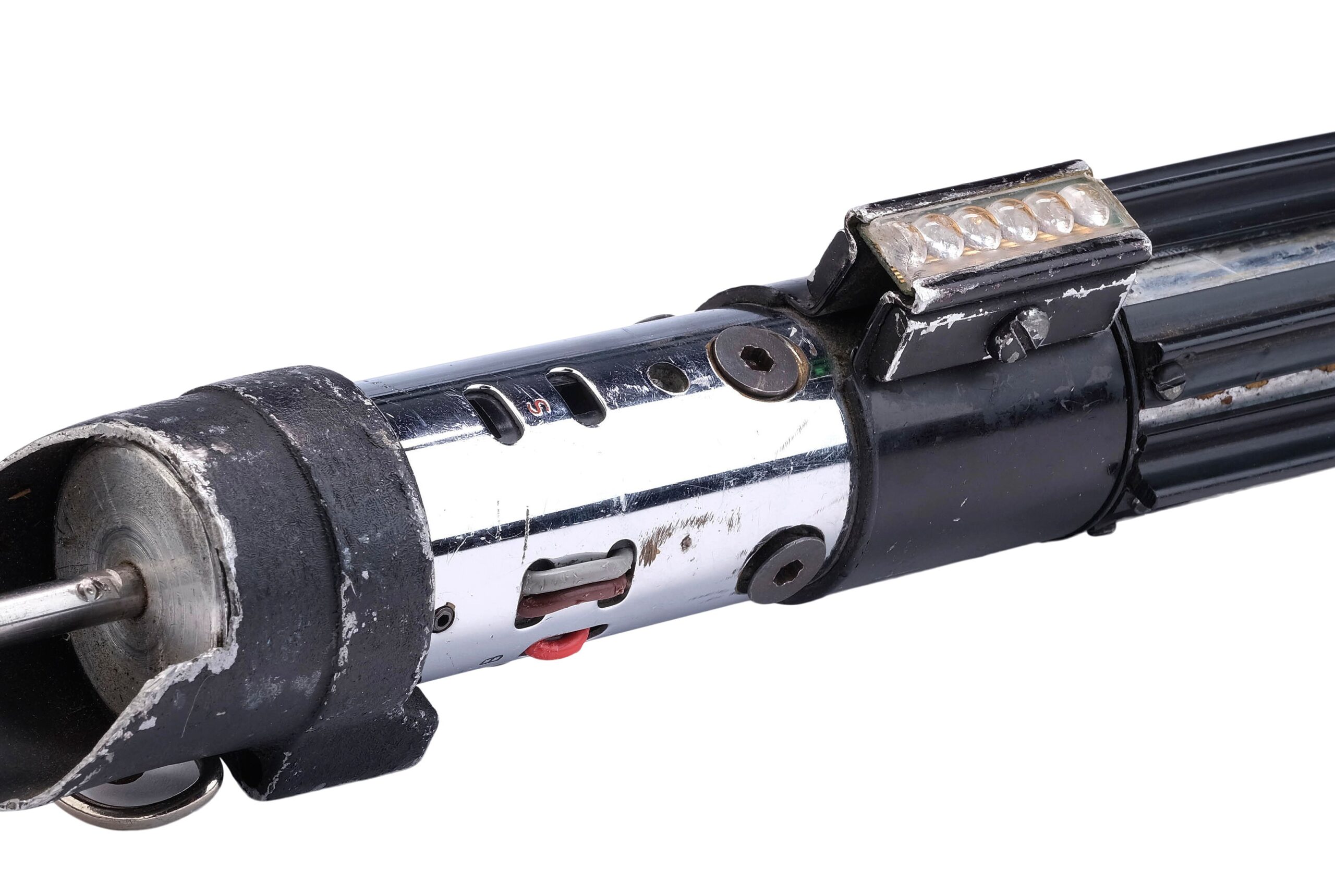 Darth Vader had this weapon in hand in Star Wars: The Empire Strikes Back (1980) and Return of the Jedi (1983). As noted by Propstore, it’s made from a 1950s British camera flash bulb attachment, which prop makers modified with plastic grips, electrical wires, and magnification bubbles used in vintage calculators.