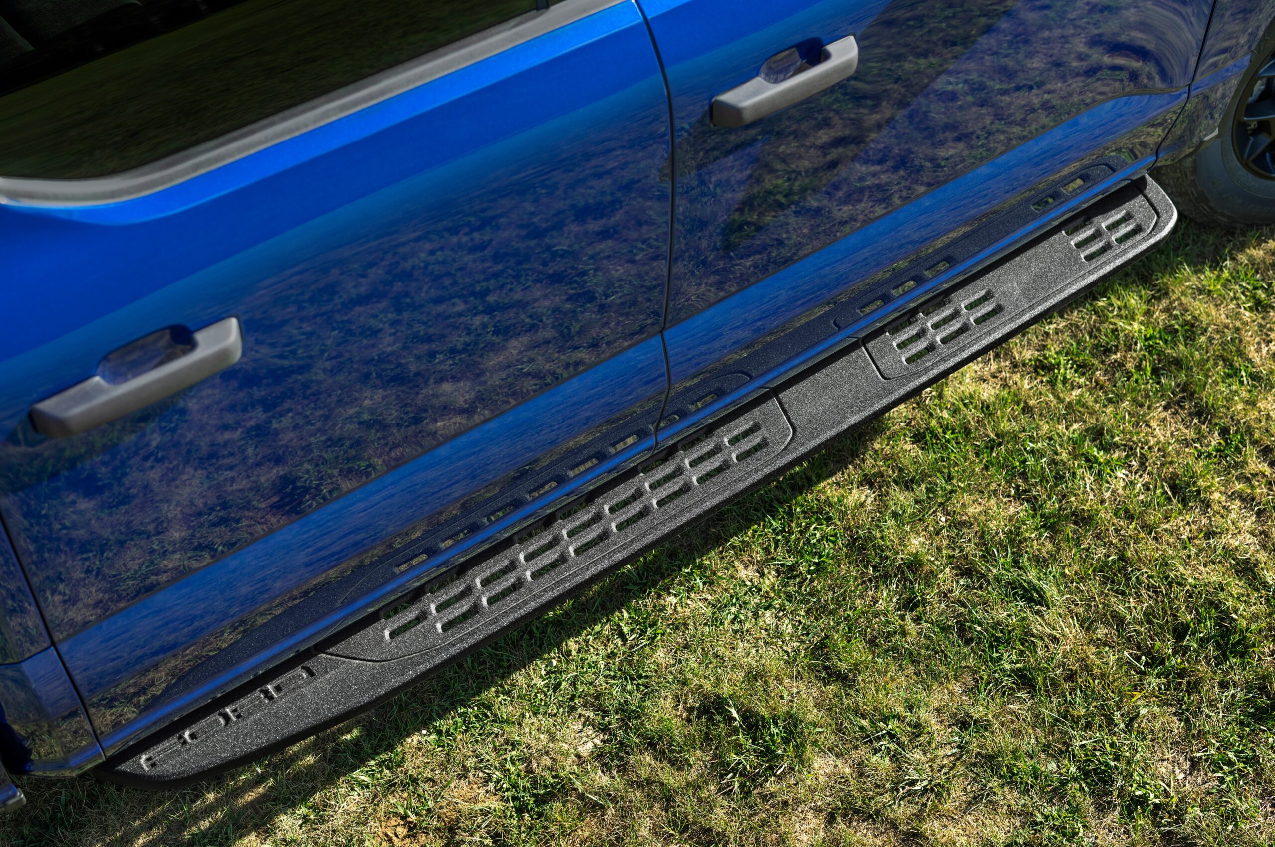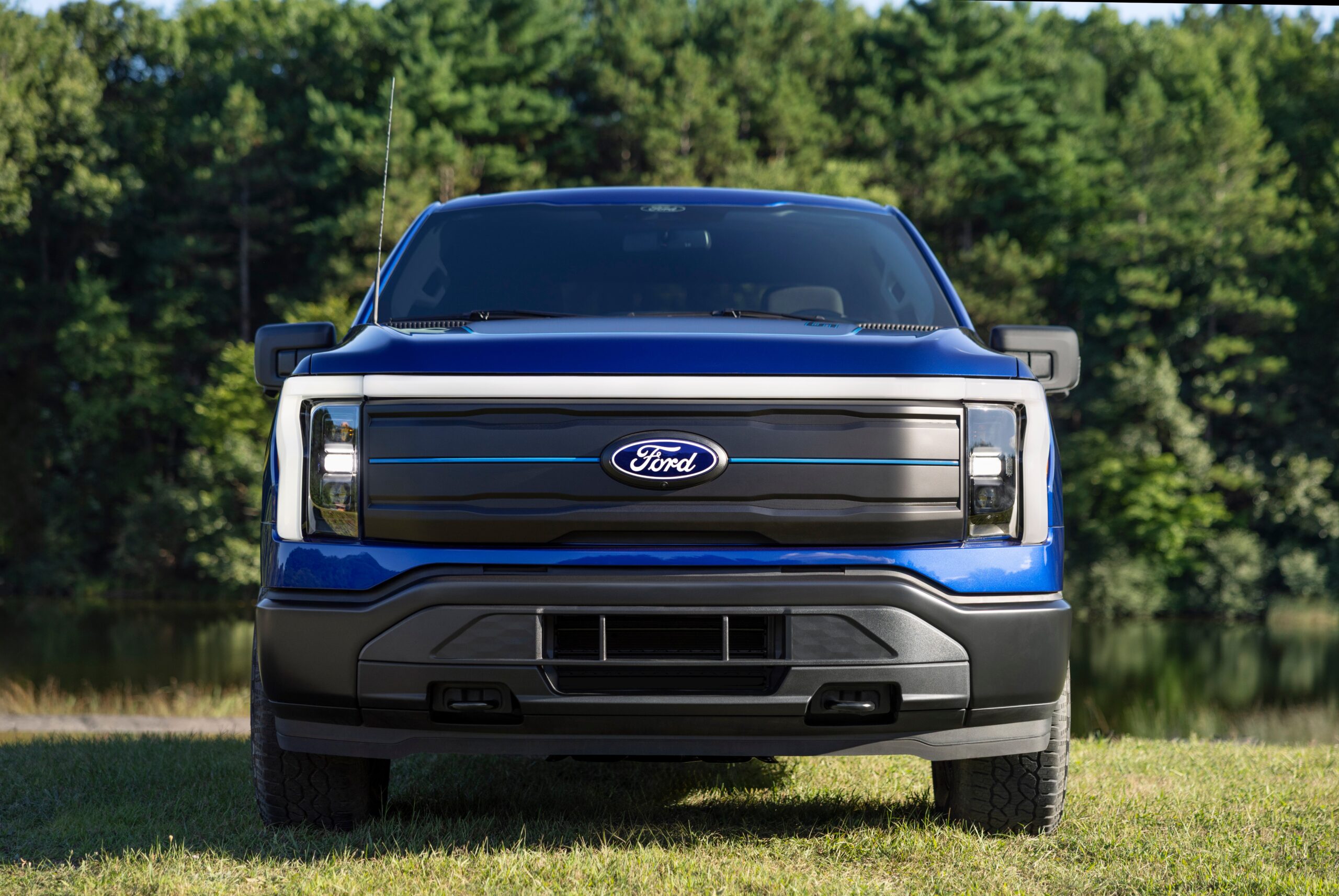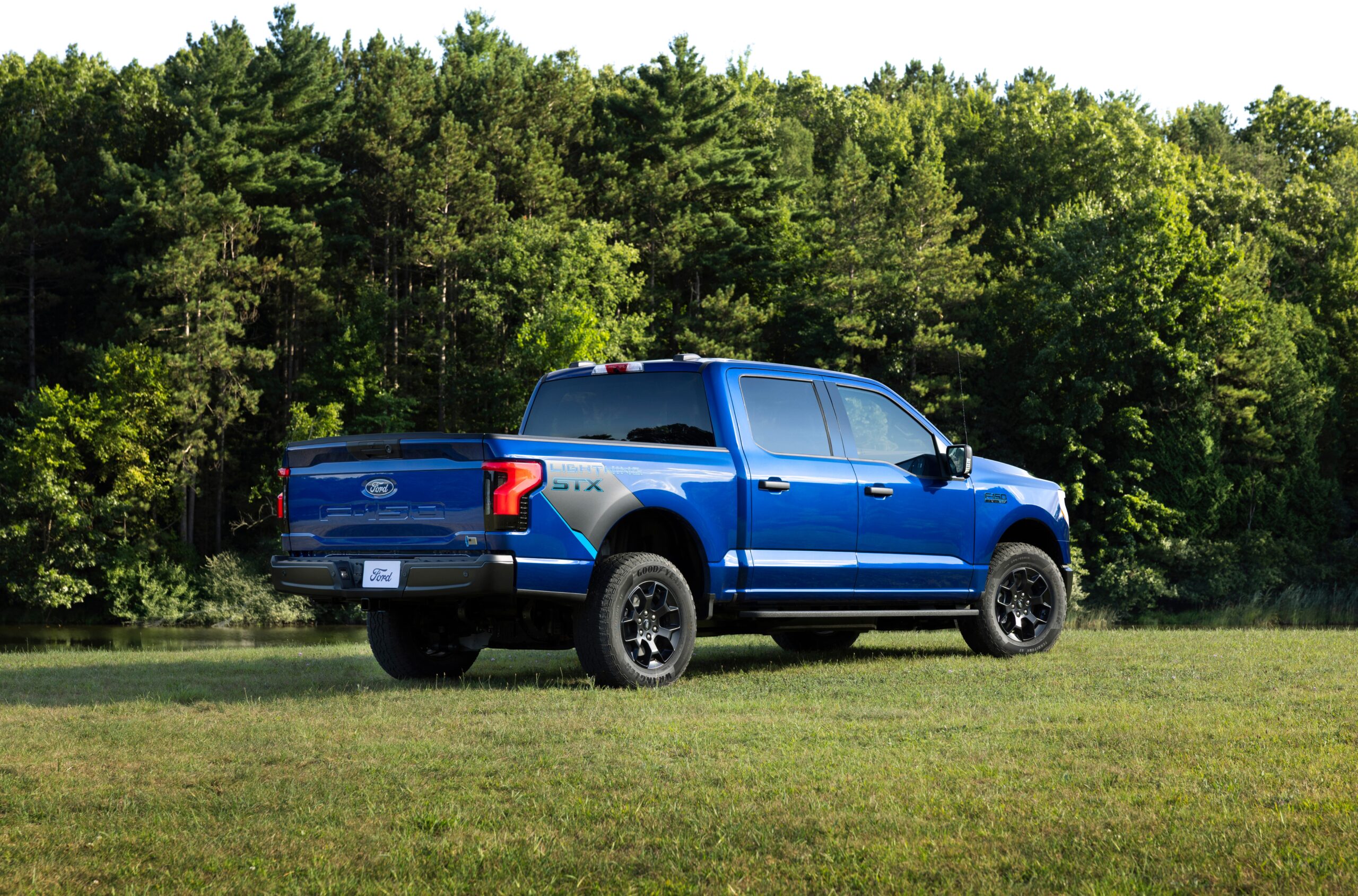 There’s a new grille, blue accent lines, and “STX” badging throughout. Truck owners who like to do actual truck stuff with their big electric truck can option up with a black vinyl floor for extra protection. In addition to the regular range of paint options, the STX will also come in two new colors: Argon Blue and Marsh Gray.