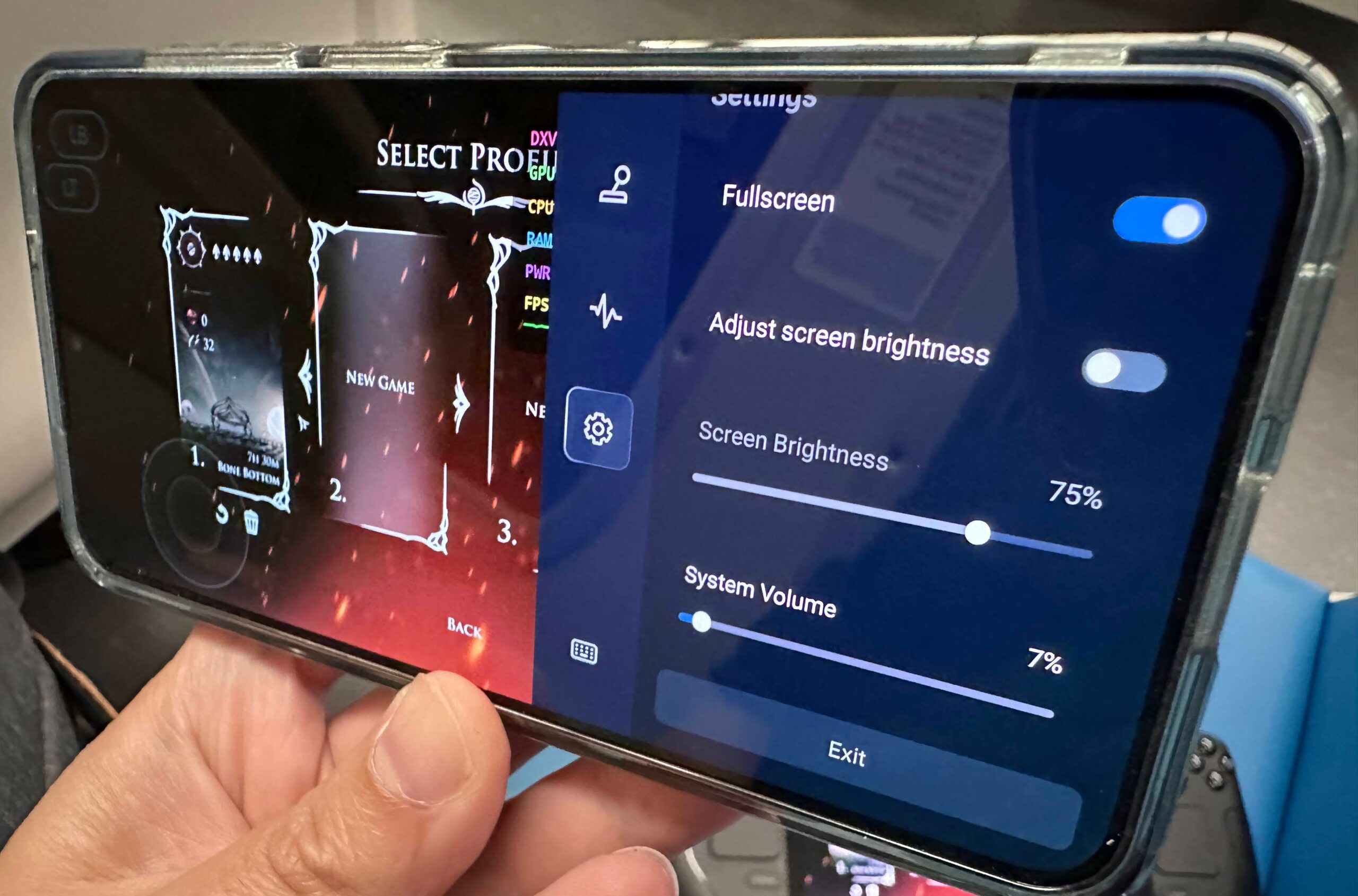 To make sure you trigger an upload when you’ve finished, swipe the right edge of the screen left, hit the gear icon and pick Exit. It should say it’s uploading your save to Steam, and it shouldn’t take very long at all before the game exits.