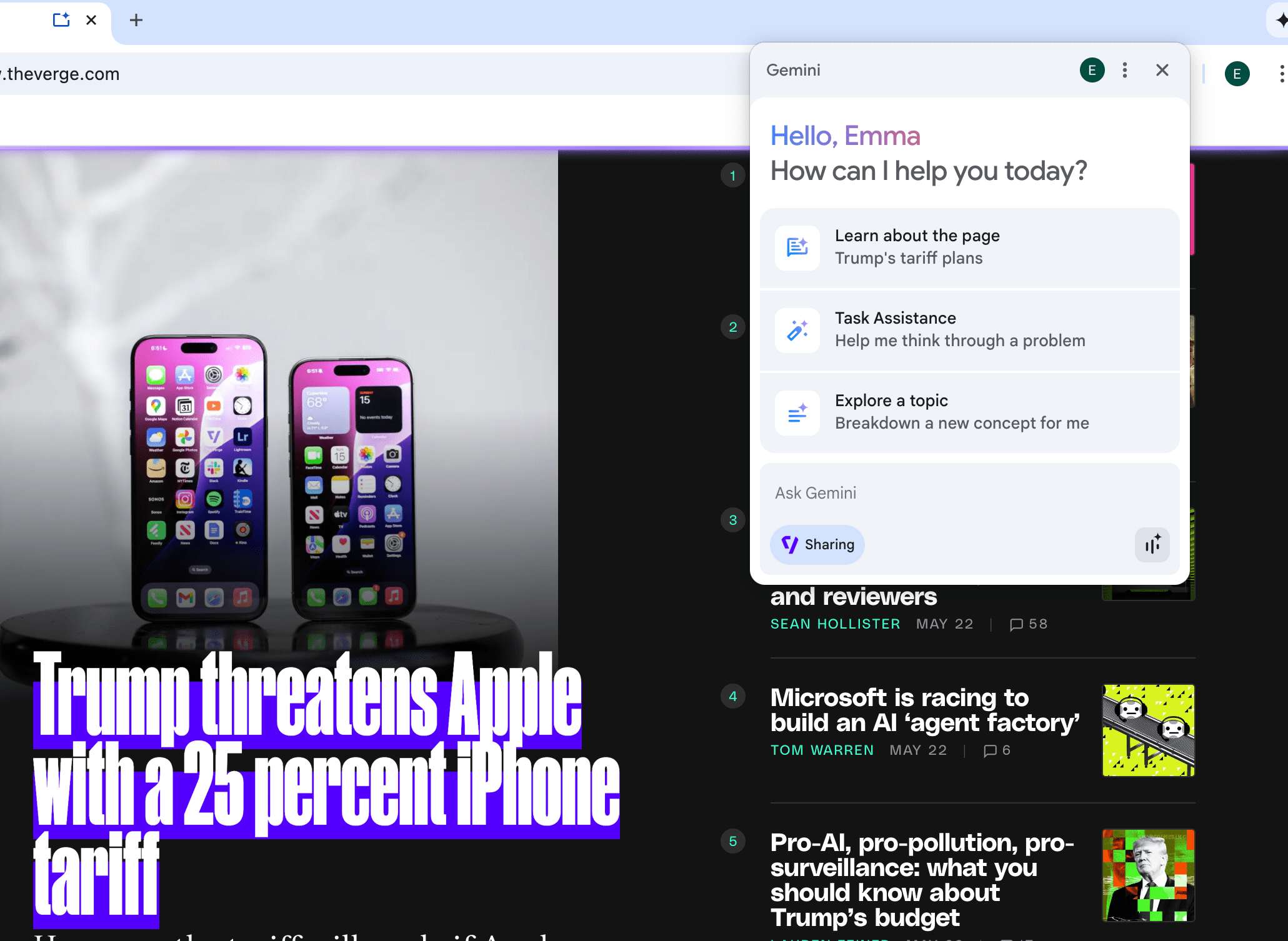 Like OpenAI’s ChatGPT Agent, Google is also planning to introduce an ability for Gemini in Chrome to be able to do “tedious tasks” on your behalf in the coming months, Charmaine D’Silva, Chrome’s director of product management, said in a briefing with reporters on Wednesday.  It’s designed to grocery shop for you from a grocery list in your email, reschedule deliveries, set up hair appointments, book restaurant reservations, and more, and it will have checkpoints in place for anything that’s considered “high-risk” or “irreversible,” she said. Google did not provide a specific launch date when asked by The Verge.