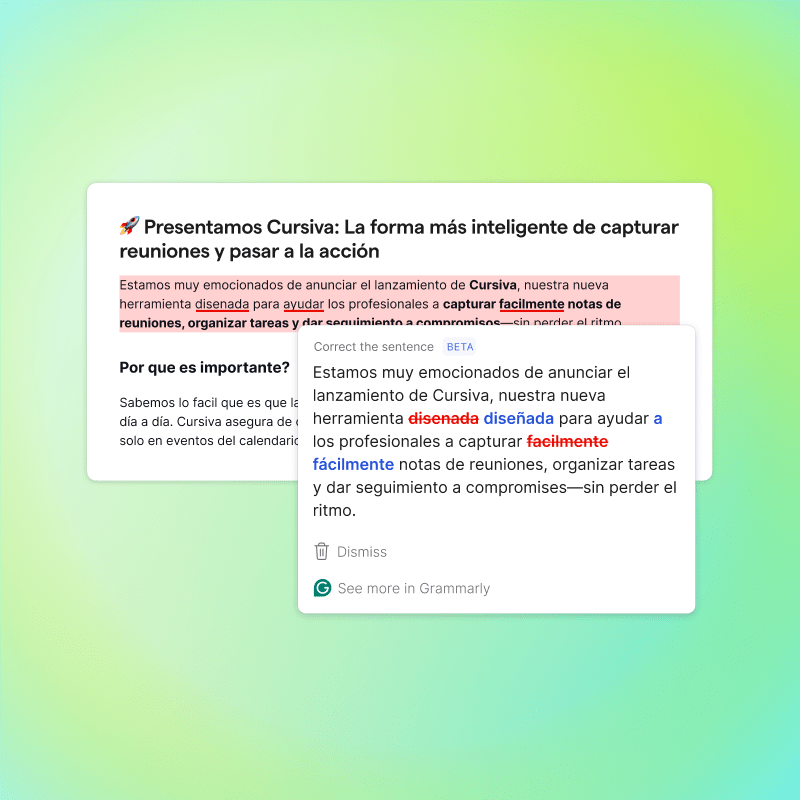 In addition to catching spelling mistakes, the app reworks sentences and paragraphs to match the tone of native speech and improve the overall clarity — now in six languages. Grammarly also translates the six core languages into 19 different languages “without having to leave the tool and go to another translation provider,” Behnke says.
