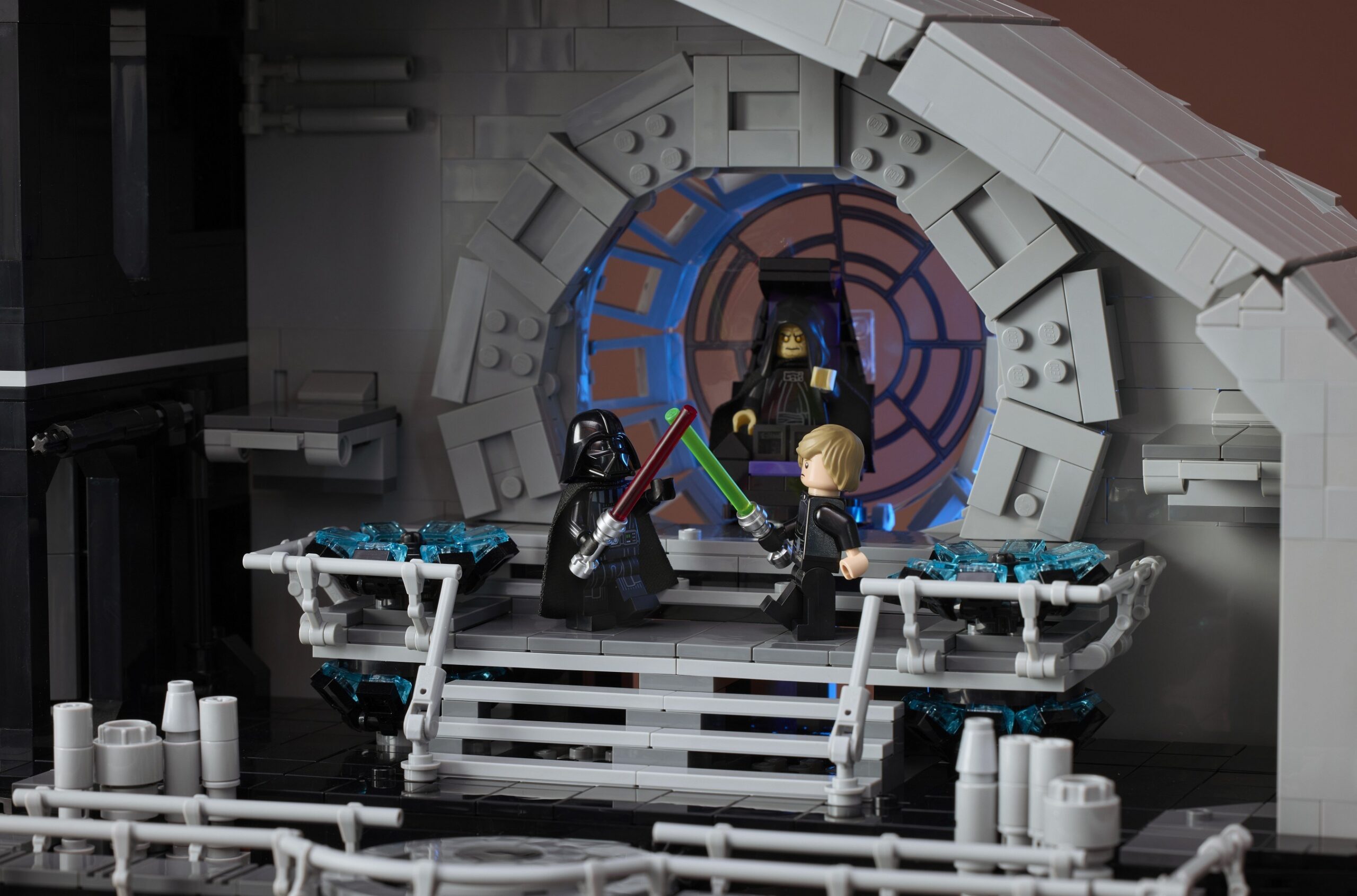 Meanwhile, Vader can find a disturbing lack of faith in the conference room, Obi-Wan Kenobi can go tackle the tractor beam, while Luke and Leia swing across the chasm overhead; you get superlaser targeting and control rooms for Leia to give up Dantooine, and a turbolift to take minifigs to each of six different levels. Then, Luke can have his Return of the Jedi showdown with Vader and the Emperor and his Red Guards in his throne room at the end.