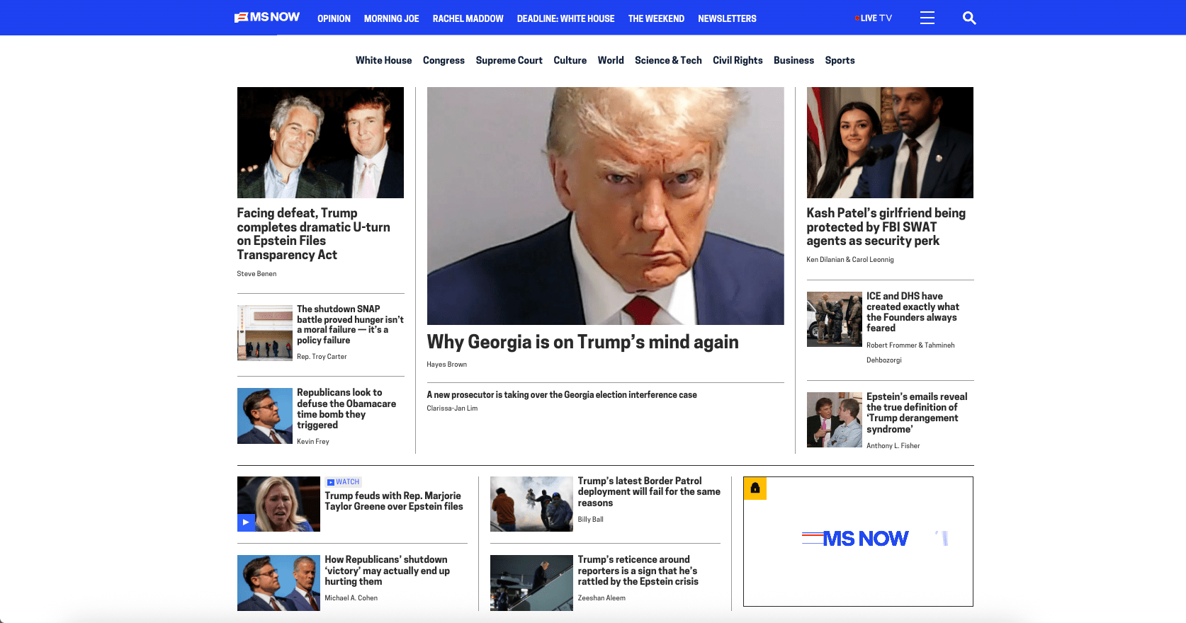 A few months after announcing its big name change, MSNBC is getting a new domain featuring its new name: ms.now. It features essentially the same layout as the old MSNBC website, but with a fresh coat of paint, including the new MS NOW flag logo — the old MSNBC peacock is gone.