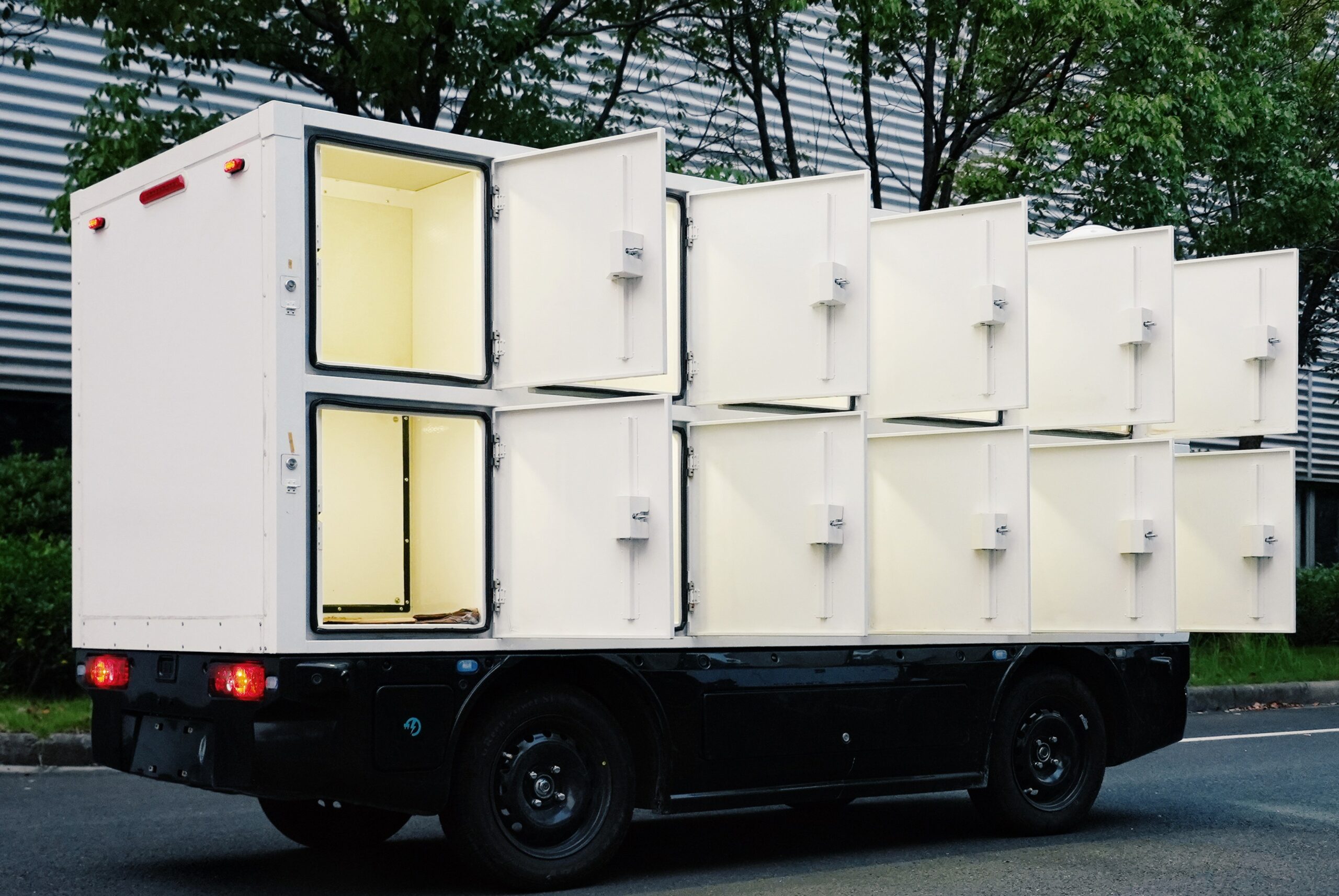 Robomart’s RM5 is a level-four autonomous delivery vehicle comprised of 10 individual lockers. | Image: Robomart