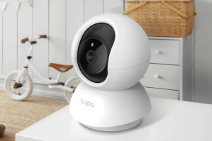 The Tapo Pan / Tilt is a simple indoor camera for monitoring your baby or pet. The 1080p camera has a 360-degree horizontal range and 114-degree vertical range, covering a wide area for near-full coverage. It supports two-way audio, motion tracking, and night vision.