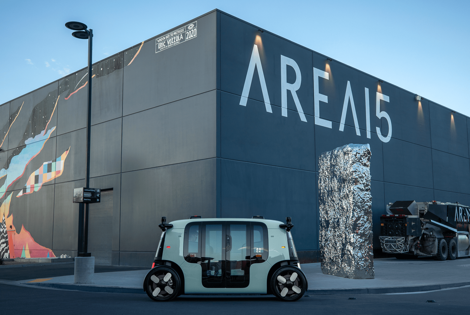 In Las Vegas, Zoox’s robotaxis will pickup and dropoff passengers from designated zones at its partnering destination. Resort World and AREA15, in particular, have created Zoox-only zones with a “Zoox concierge” onsite to help with passenger with questions they may have.