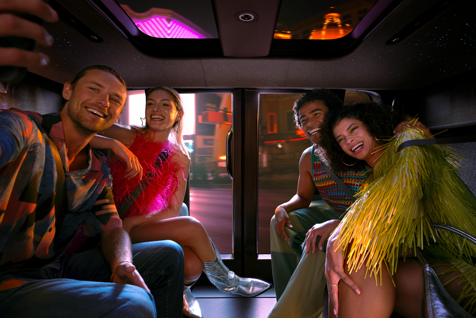 Zoox’s robotaxis are fully driverless insofar as they lack traditional controls like pedals and steering wheels. Instead, the interior of the vehicle features bench seats positioned on either side, so passengers face each other while they ride. The exterior is covered in sensors, including cameras, lidar, and radar. The vehicles typically won’t exceed 45 mph when in operation.